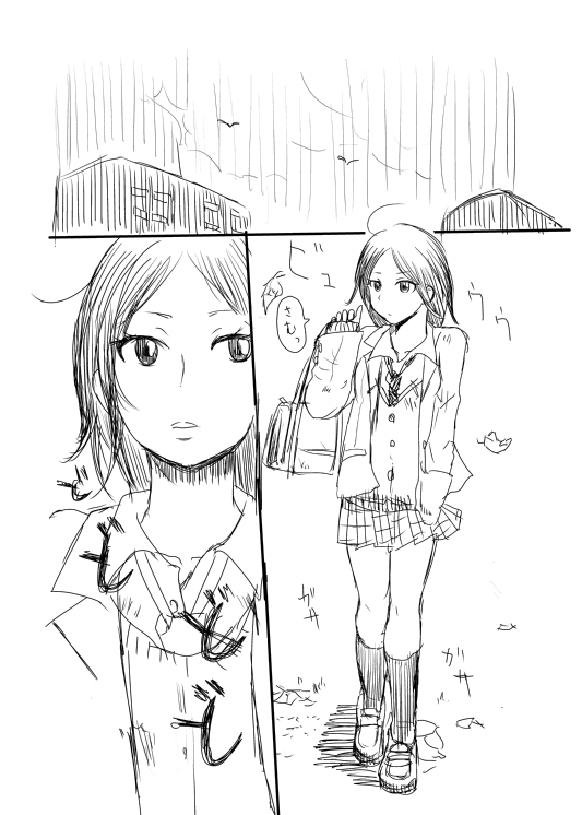 制作日記 その1 進捗 2011年05月05日 常に、目に見えない何かと戦い続けている男のブログ更新。 現在約70ページに及ぶ読みきり漫画を描いております。 さぁどんなお話なのでしょうか。ちなみに女子高生は主役ではありません。 しかしこういうページは不思議とモチベーションUPです(´ω` )