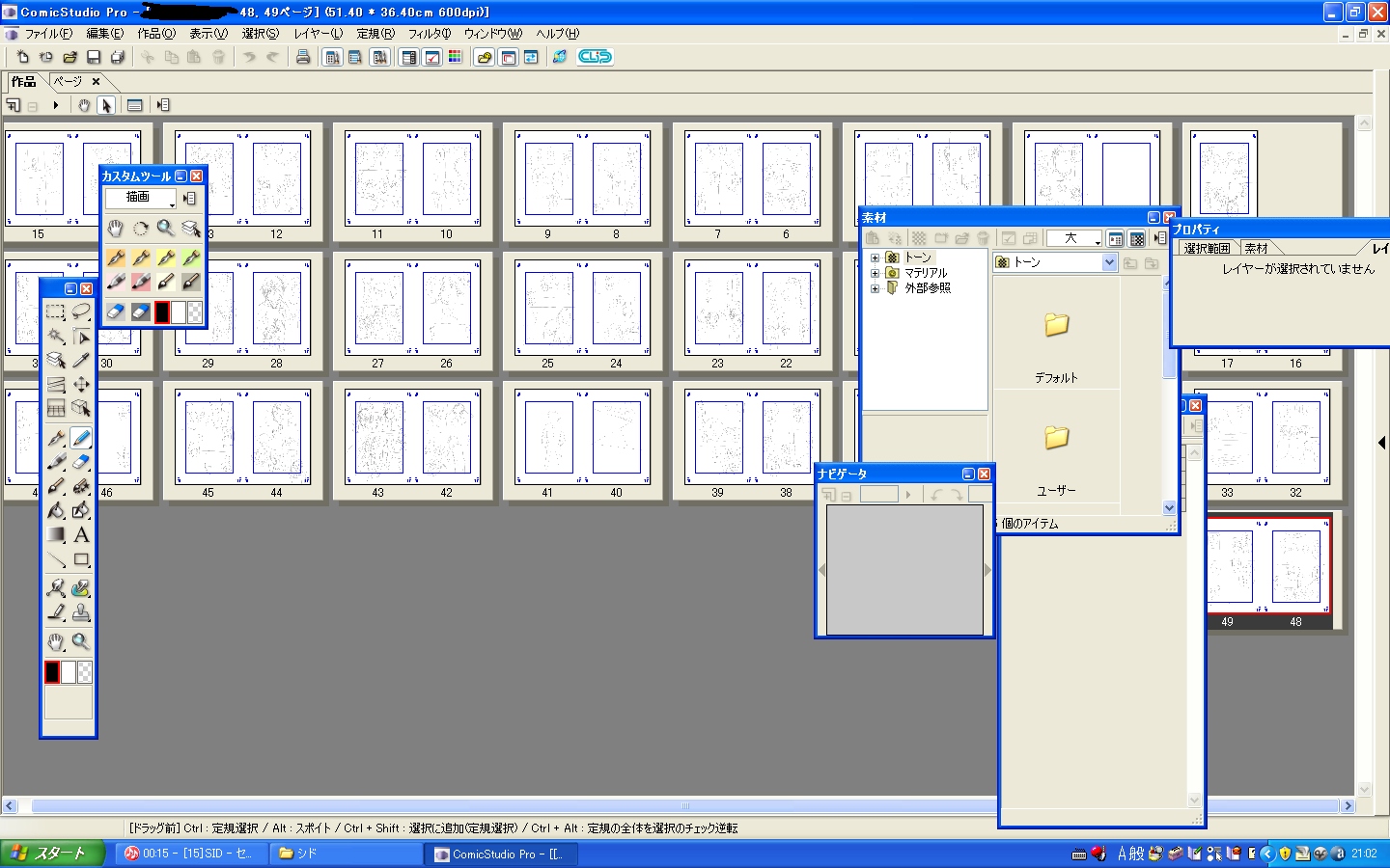 ネームばかりが 進捗 2009年07月23日 溜まる一方。今勢いでガガっと20ページくらい描けたのですが。全部で40ページか50ページになりそうです・・・。メチャクチャ自信作なので、情熱が消えないうちに描いちゃおうかなぁ・・・。作成途中のマンガがお蔵入りする可能性もあるけど、勿体無いので絶対完成はさせよう。時間ムダになるし・・・。
